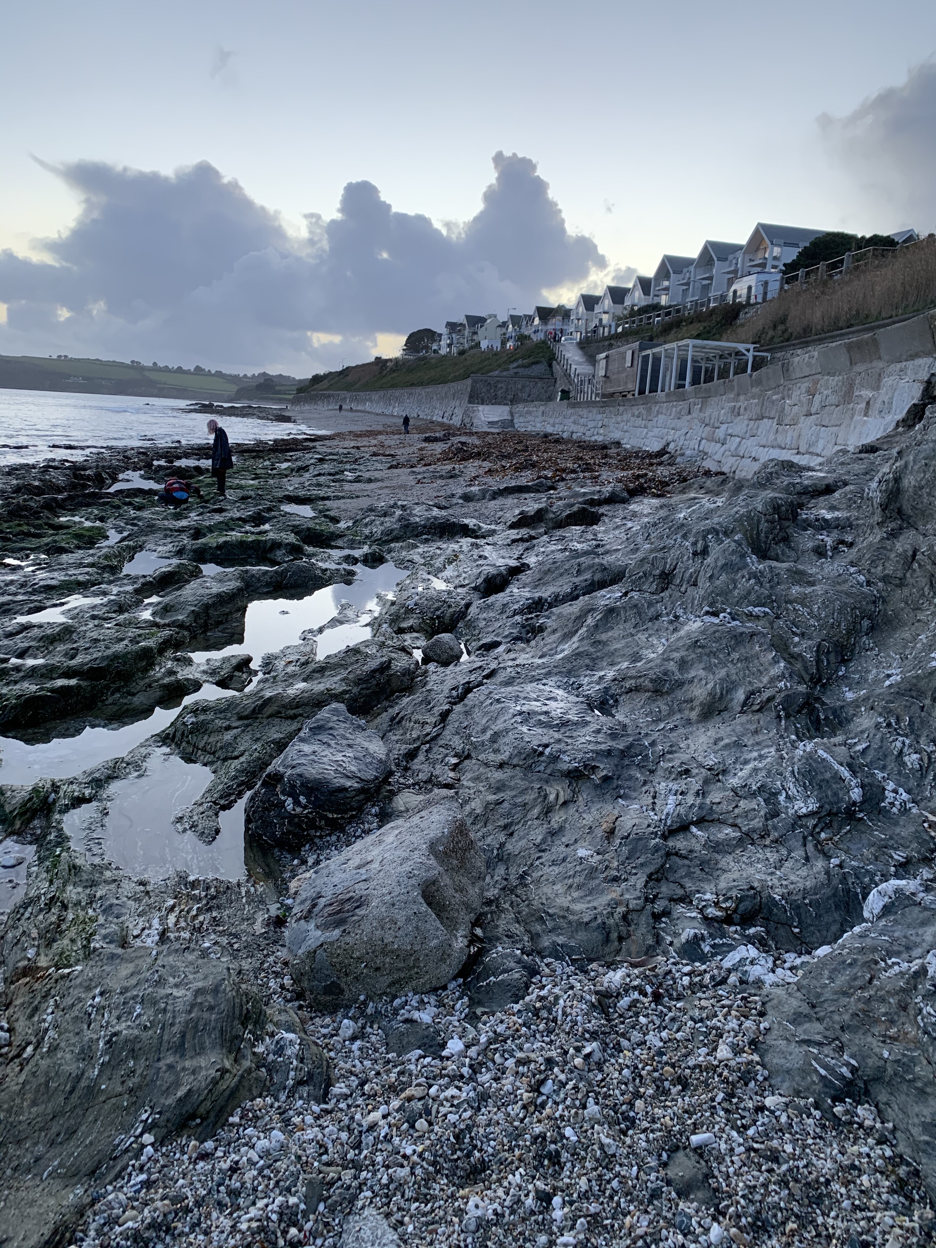 We went out again later in the afternoon to a beach to find some pebbles we could use for my grandson’s school project. The ramp down to the beach was quite steep but I made it down. As we walked along the beach we came to an area where it was very rocky. The choices were to head back to the ramp or get across the rocks and then head back up to the car via some dodgy stone steps