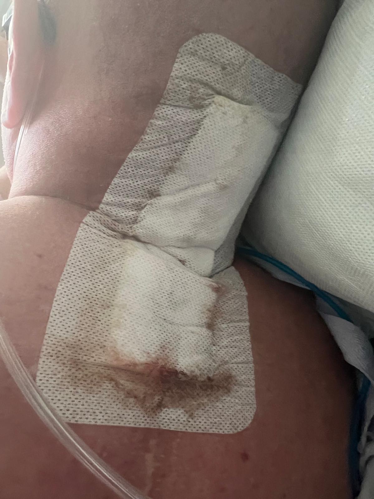 The doctors have just done their rounds. I can get out of bed for short spells today. Since I’ve been using PCA pump a fair bit, they are going to keep me on it until tomorrow. I restarted Etoricoxib this morning so that should also help. The dressing on my spine had quite a bit of blood on and had leaked onto the pillows several times yesterday. I think I got through 4 pillowcases during the day. The registrar took a look this morning and was happy that it was dry now and didn’t what to disturb the wound by changing the dressing so it’s going to be left for now.